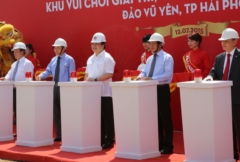 (Chinhphu.vn) - Sáng 12/7, UBND thành phố Hải Phòng và nhà đầu tư - Tập đoàn Vingroup đã tổ chức khởi công Dự án Khu vui chơi giải trí, nhà ở và công viên sinh thái trên toàn bộ diện tích đảo Vũ Yên (Hải Phòng).
